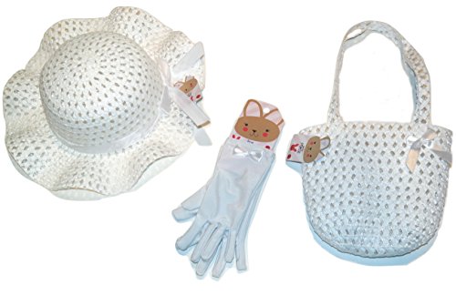 Girls Dress Up Toddler Size White Easter Bonnet Hat, Silky Gloves and Purse