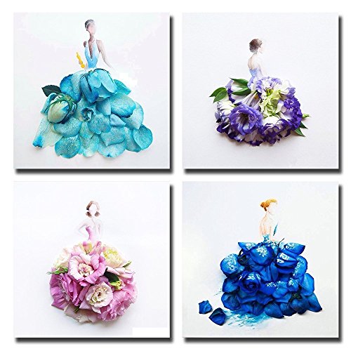 Gardenia - Creative Petal Girl Dresses Art Canvas Wall Art Paintings 16 x 16 Inch Stretched and Framed Modern Decor Paintings Artwork for Living Room Bedroom Decorations (16 X 16 in)