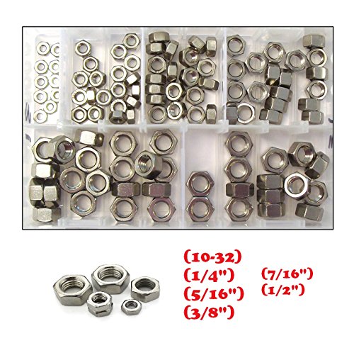 (105pcs) Hex Nut Stainless Steel Kit Assortment Imperial 10-32 1/4 5/16 3/8 7/16 1/2