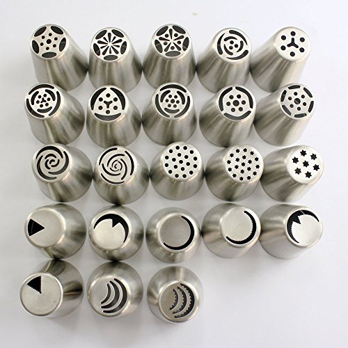 YOURSMILE Russian Piping Tips 23PCS/SET Stainless Steel Large Size Icing Syringe Set DIY Coupler Nozzle