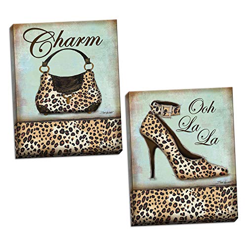 wallsthatspeak 2 Leopard Print Fashionista High-Heel and Purse Set; Two 11x14in Hand-Stretched Canvases