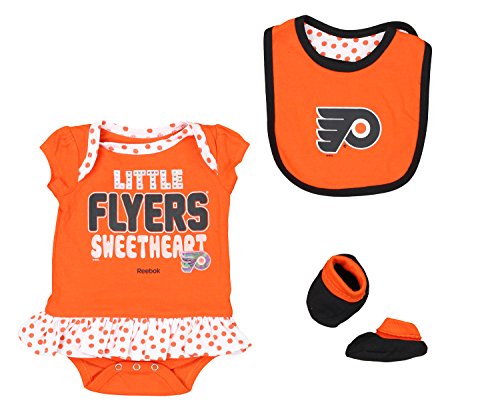 Reebok Philadelphia Flyers NHL Baby Girls Little Sweetheart 3 Piece Creeper Set
