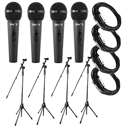Package 4x Peavey PV7 Dynamic Cardiod Microphones With Cables + 4x Microphone Stands