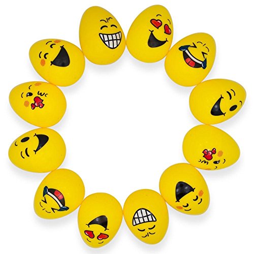 BestPysanky 2.25" Set of 12 Yellow Emoji Faces Plastic Easter Eggs