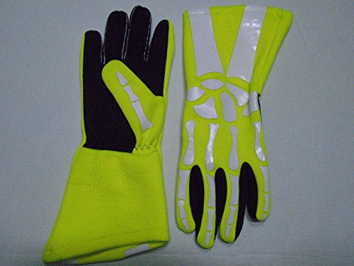 Cuircon-Florescent Skeleton Nomex Racing Gloves - Yellow Glove with Skeleton/Skull Bones Print (XL, Yellow-White) (S, Florescent Green with White Skeleton)