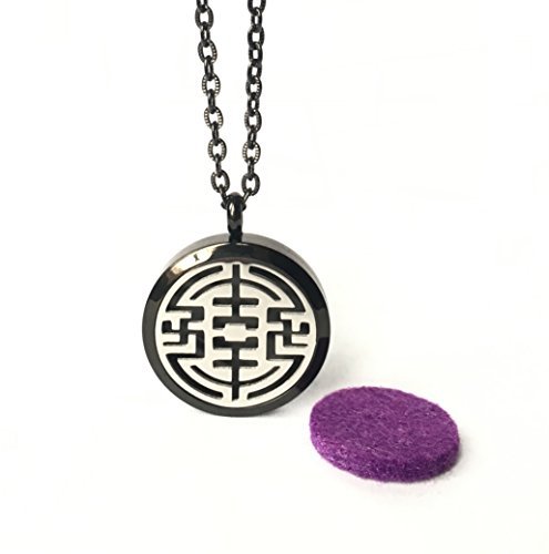 FIKA Black Longevity Aromatherapy Essential Oils Necklace Pendant Air Freshener Locket Pads Included