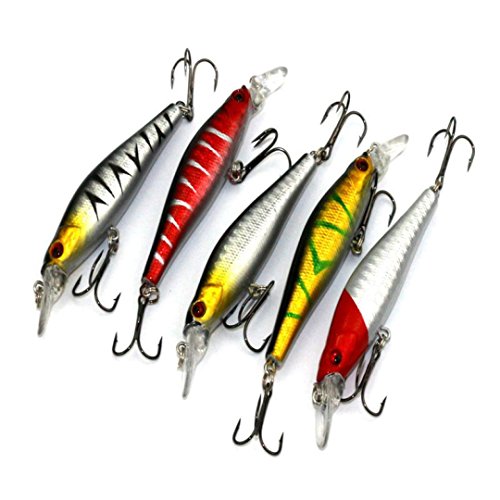 GBSELL 5pcs Fishing Bass Lures Diving Crankbait Minnow Treble Hooks Baits