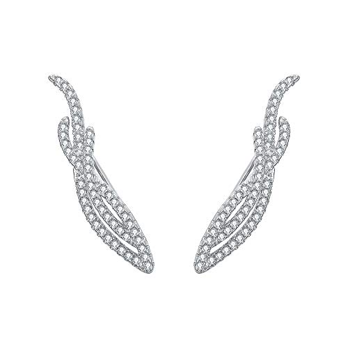 EVER FAITH 925 Sterling Silver CZ Art Deco Vine Sweep Ear Cuff Wrap Hook Earrings Clear 1 Pair