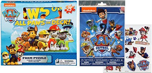 PAW Patrol 13 x 24 inch Puzzle with 25 High-Quality Large Soft Foam Puzzle Pieces + Nickelodeon Paw Patrol 25 Temporary Tattoos (Set of 2 Items)