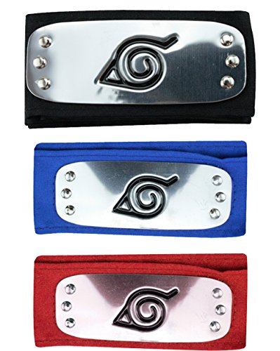 Naruto Headband Leaf Village Logo for Cosplay Konoha Kakashi Multicoloured,3PCS