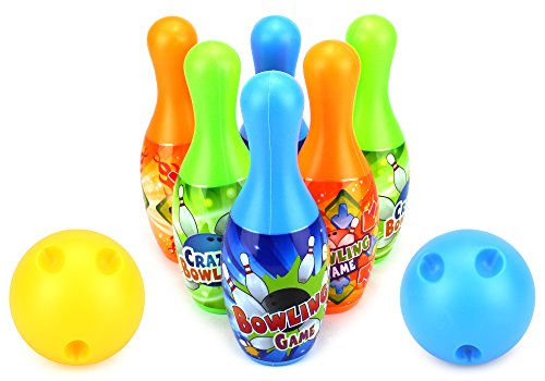 Crazy Bowler Children's Mini 8 Piece Toy Bowling Set w/ 6 Pins, 2 Bowling Balls