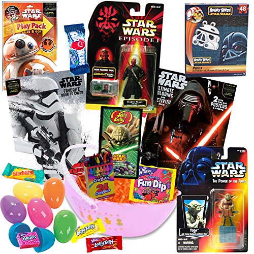 Star Wars Easter Basket - Includes 22 Pieces - Star Wars Basket with New Star Wars Toys Easter Eggs Candy Star Wars Coloring Activity Books Crayons Star Wars Jelly Beans Puzzle and Easter Grass