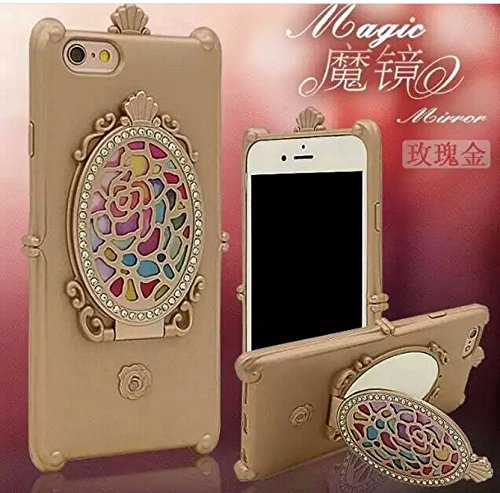 iPhone 6 Plus/6s Plus 5.5 inch Glass Stand Makeup Case-Auroralove Rose Gold Beauty Bling Diamond Rose Flower Mirror Glass TPU Rubber Bumper Case Cover for iPhone 6 Plus/6s Plus 5.5 inch