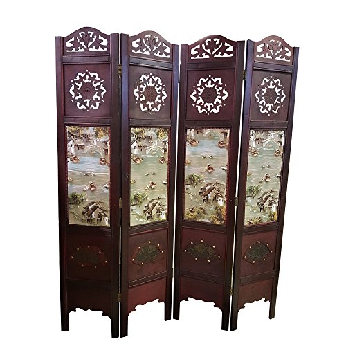 Vintage Oriental Style 4 Panels Screen Room Divider FUR8353