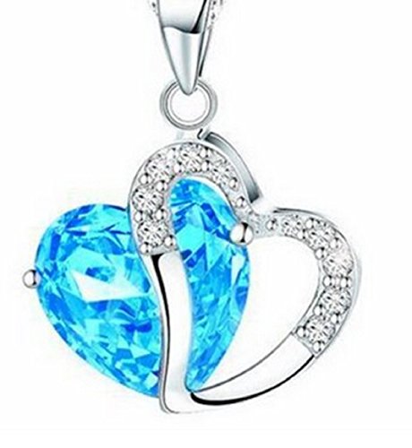 dhnewsun Rhodium Plated Silver Accent Heart Shaped Pendant Necklace(Blue)