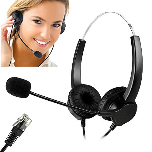 Call Center Headset, Bizoerade Hands-free Call Center Noise Cancelling Corded Binaural Headset Headphone with 4-Pin RJ9 Crystal Head and Mic Mircrophone for Desk Phone Call Center Phone