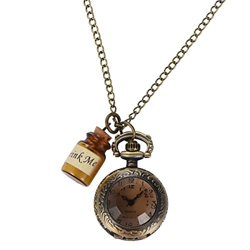 Uarter Vintage Drink Me Pocket Watch Necklace Quartz Watch Alice in Wonderland