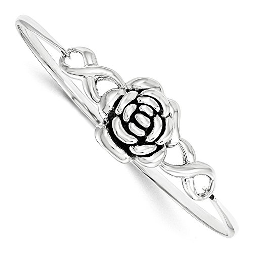Sterling Silver Rose Antiqued Hinged Bangle,7.5