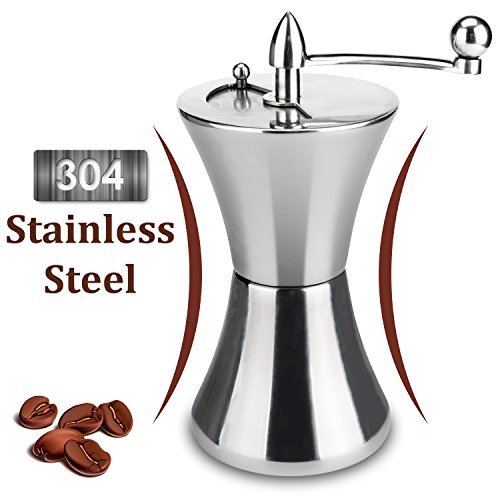 Manual Coffee Grinder, Stainless Steel Hand Coffee Bean Grinder, Personal Bur Grinder, Coffee Burr Mill, Espresso Grind, Portable Hand Crank Coffee Grinder