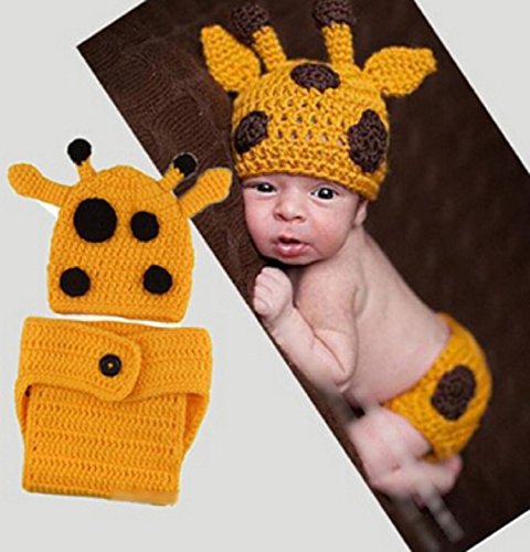 Dhnewsun Lovely Handmade Giraffe Theme Woolen Crochet Set Baby Newborn Outfit Photo Prop
