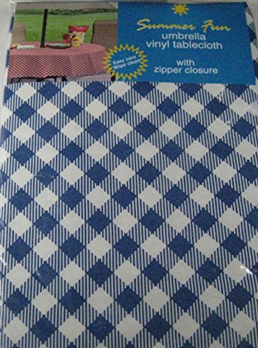 Summer Fun Blue and White Diamond Check Flannel Back Vinyl Umbrella Tablecloths with Hole and Zipper-assorted Sizes (70 Round)