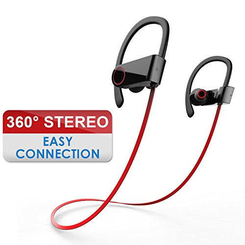 StarryBay U8-2 Sport Running Bluetooth Headphones Comfortable Earhook Wireless Hd Stereo Sound Quality Headset Sweat Proof Stable in Ear Headsets Ergonomic Earphones Workout Earbuds Red Line