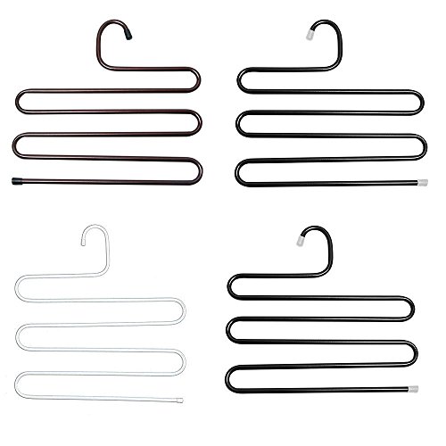 Amagoing 4 Sets S-type Metal Pants Hangers,Closet Storage for Jeans Trousers Space Saver Storage Rack