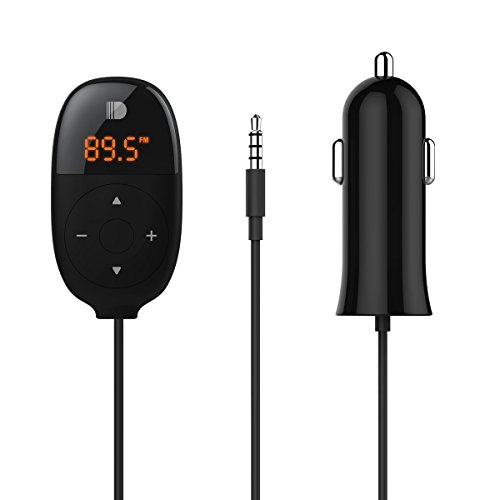 Doosl FM Transmitter Wireless Audio Radio Adapter with 3.5mm Jack & Car Charger for iPhone 6 6S Plus 5S 5C Samsung Galaxy S7 S6 Edge S5 S4 and Other Audio Players.