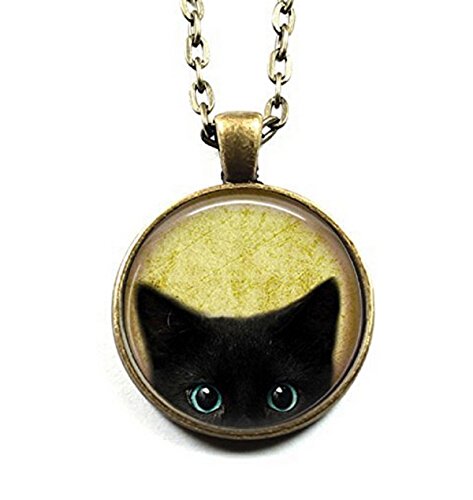 Dhnewsun Glass Dome Art Pendant Elegant Personality Black Cat Pendant for Necklace