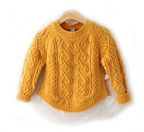 QZUnique Little Girls' Long Sleeve Knitted Sweater with Beautiful Lace Trim Yellow