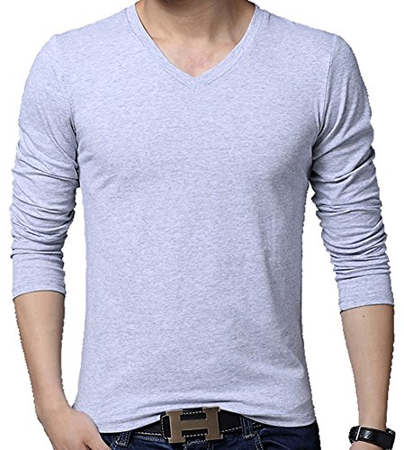 QZUnique Men's Plus Fashion V-Neck Long Sleeve T-Shirt