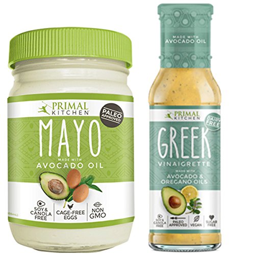 Primal Kitchen - Avocado Mayo and Greek Vinaigrette Combo Pack, Non-GMO Verified, Paleo and Whole30 Approved (8 oz and 12 oz)