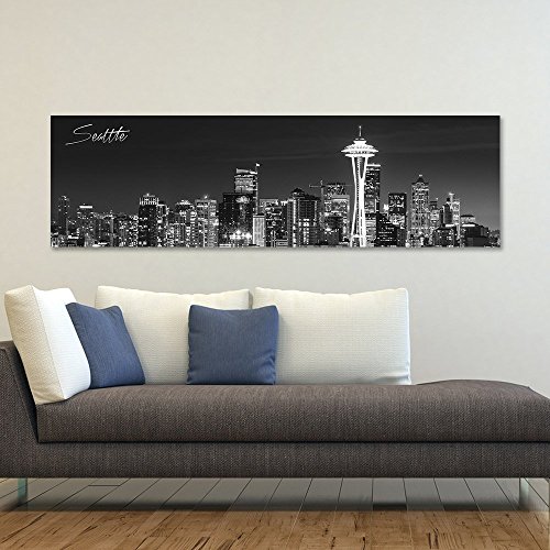 - ADMIRE SEATTLE AT HOME: The Emerald City is home to mountains, lush evergreen forests, the iconic Space Needle, and the headquarters of both Microsoft and Amazon. Admire its familiar architecture at home with this gorgeous canvas of its skyline.