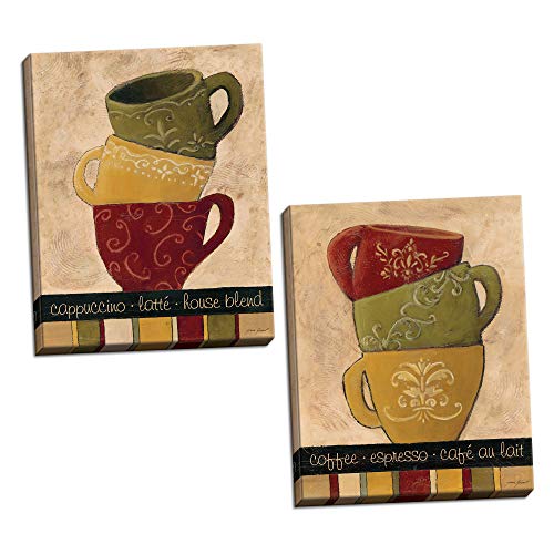 wallsthatspeak 2 Fun, Colorful Stacked Coffee Cups; Kitchen Décor; Two 8x10in Hand-Stretched Canvases