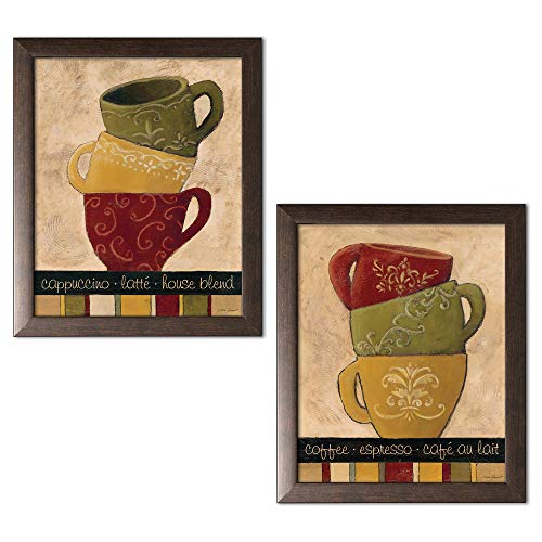 wallsthatspeak 2 Fun, Colorful Stacked Coffee Cups; Kitchen Décor; Two 8x10 in Brown Framed Prints, Ready to Hang!
