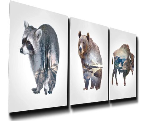 Gardenia Art - Bear and Yak with Thier Living Environment Canvas Prints,16x16 inch,3 pcs, Stretched and Framed Ready to Hang
