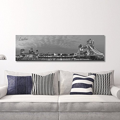 WallsThatSpeak Panoramic London Cityscape Picture, Black and White Stretched Canvas Art Prints, Wall Decoration for Bedroom or Office, Framed and Ready to Hang, 14” x 48”