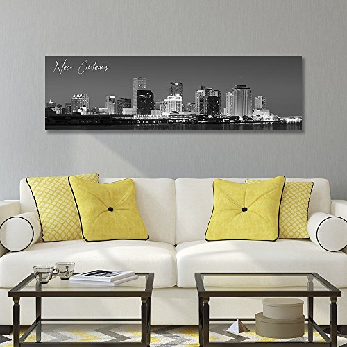 WallsThatSpeak Panoramic New Orleans Cityscape Picture, Black and White Stretched Canvas Art Prints, Wall Decoration for Bedroom or Office, Framed and Ready to Hang, 14” x 48”