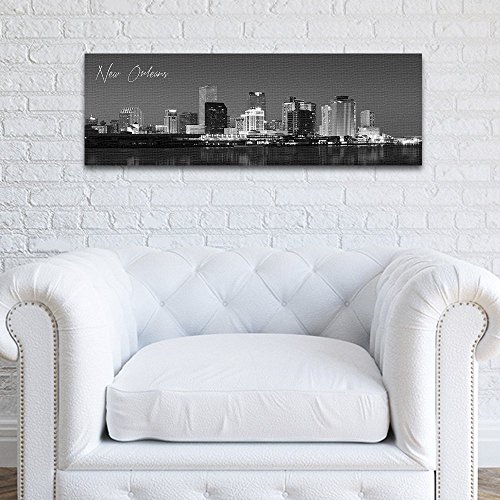 WallsThatSpeak 8" x 24" Panoramic New Orleans Cityscape Picture, Black and White Stretched Canvas Art Prints, Wall Decoration for Bedroom or Office, Framed and Ready to Hang