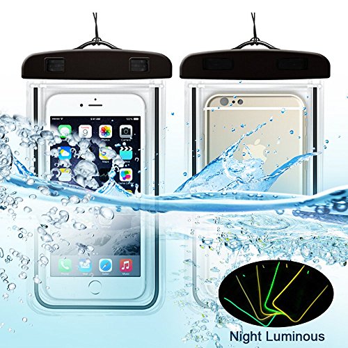 Universal Waterproof Case, DedeDeal Night Luminous Water Proof Dust Dirt Proof Snowproof Pouch Bag IPX8 for iPhone 6/6S Plus, iPhone 5S 5C 5 4S, Galaxy S6, S6 Edge S5, Note 4 3 Black