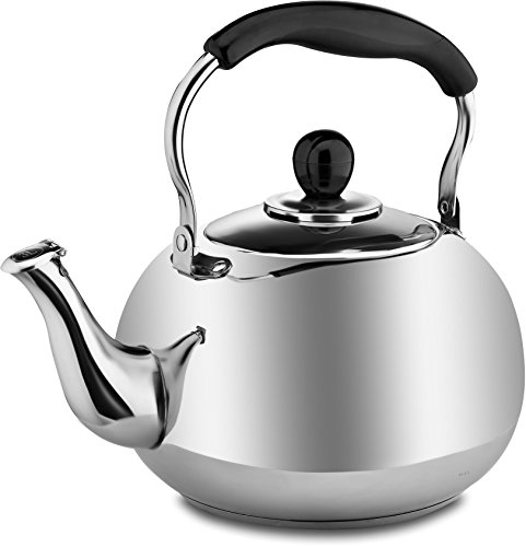 Whistling Tea Pot 2 Quart for Stove Top in Quality Classic Polished Stainless Steel