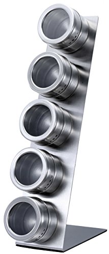 Pro Chef Kitchen Tools Stainless Steel Magnetic Spice Rack - 5 Piece Set With Vertical Metal Stand