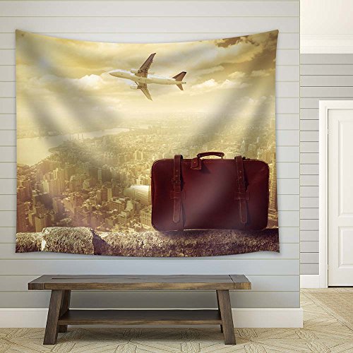 wall26 - Retro Style Trave Concept Photo with Plane and Briefcase - Fabric Tapestry, Home Decor