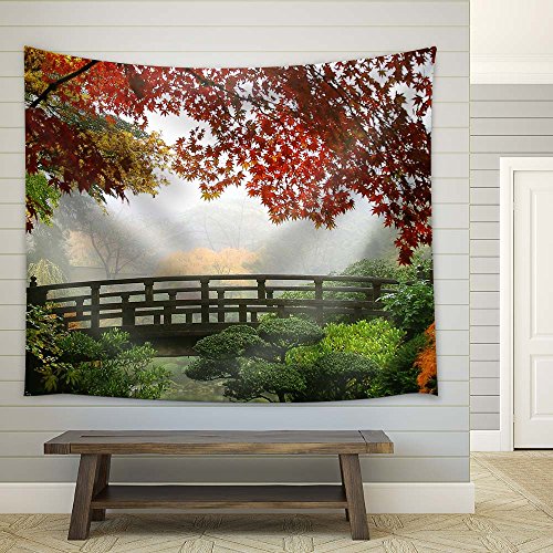 wall26 - Autumn Morning in a Garden with Maple Trees - Fabric Tapestry, Home Decor