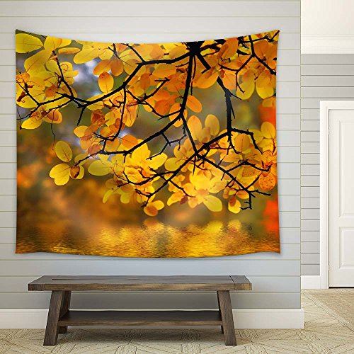 wall26 - Golden Leaves on Tree Branch in Autumn - Fabric Tapestry, Home Decor