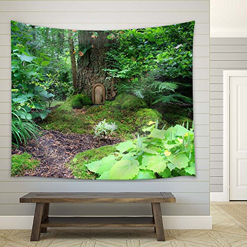 wall26 - Elf House Little Wooden Fairy Tale Door in a Tree Trunk - Fabric Tapestry, Home Decor