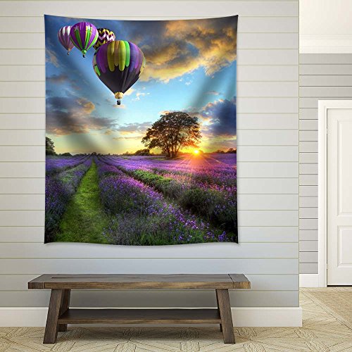 wall26 - Hot Air Balloons Above a Lavender Field - Fabric Tapestry, Home Decor