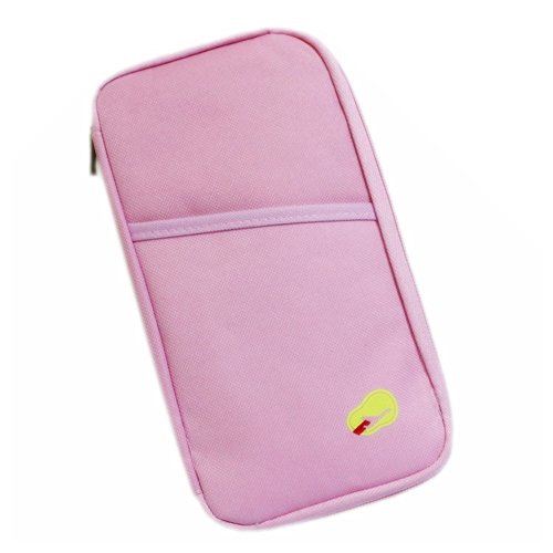 FuzzyGreen Multi-Function Creative Portable Travel Passport Organizer Wallet Documents Card Holder Cash Pouch Purse Handy Bag (Pink)