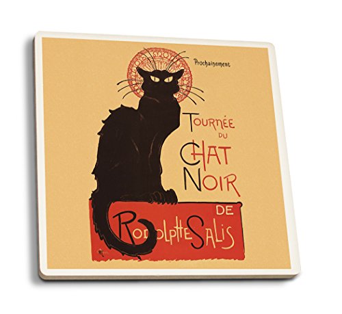 Lantern Press Chat Noir Cabaret Troupe Black Cat - Vintage Advertisement (Set of 4 Ceramic Coasters - Cork-Backed, Absorbent)