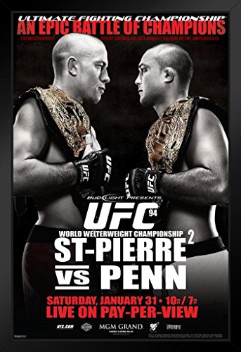Pyramid America Official UFC 94 Georges St Pierre vs BJ Penn Sports Black Wood Framed Art Poster 14x20